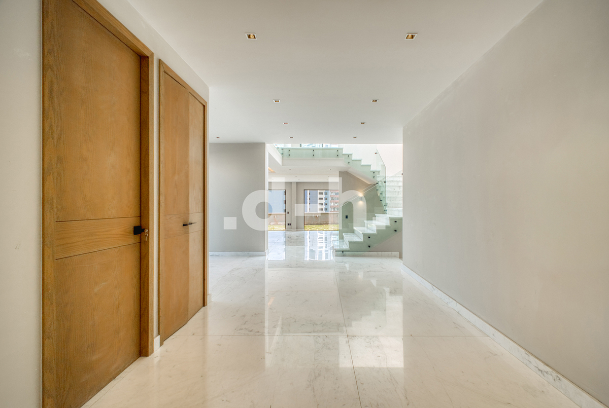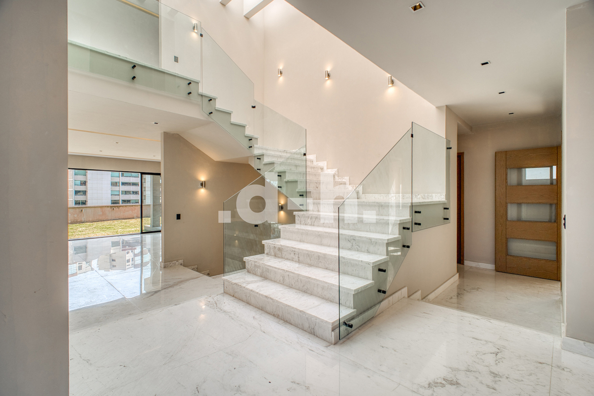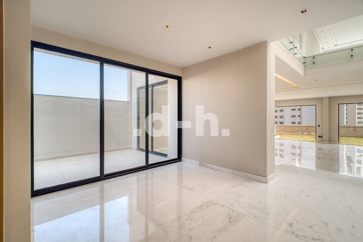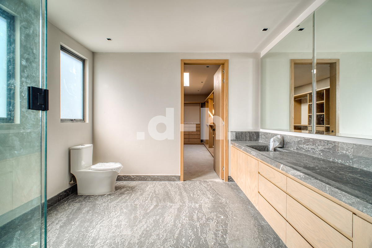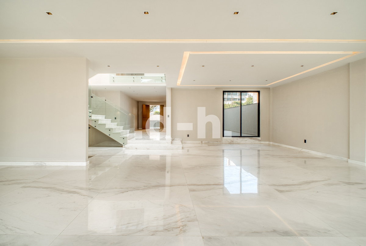 Espectacular casa con amplios espacios, doble altura y excelentes áreas sociales. Cuenta con sala y comedor con salida al jardín, cocina muy amplia con barra y despensas, estudio, antecomedor con terraza y salón de eventos con jardín. La recámara principal tiene vestidor, terraza y balcón; las 3 recámaras secundarias, walk-in closet y balcón. Dispone además de family room, oficina, dos cuartos de servicio, área de lavado, bodega, caseta de vigilancia y estacionamiento para 9 autos. *Se entrega sin pisos de madera (para personalizar al gusto)